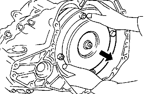 c. Check inner race rotates clockwise only. If not, replace torque converter assembly.