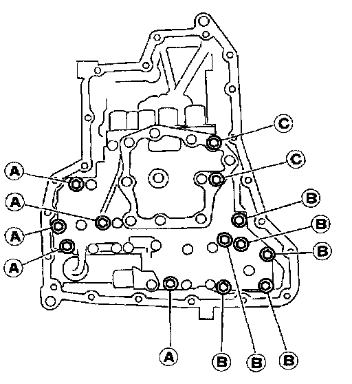 a. Remove control valve assembly mounting bolts A, B and C.