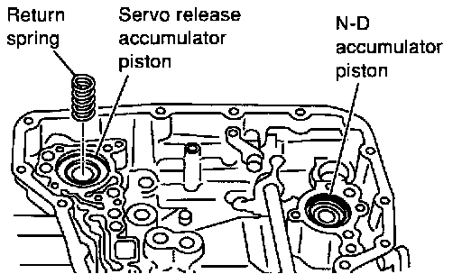 11. Remove return spring from servo release accumulator piston.