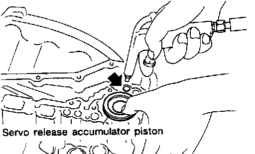 12. Remove servo release accumulator piston with compressed air.