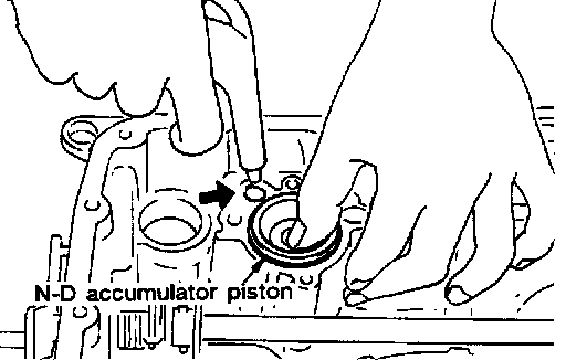 14. Remove N-D accumulator piston and return spring with compressed air.