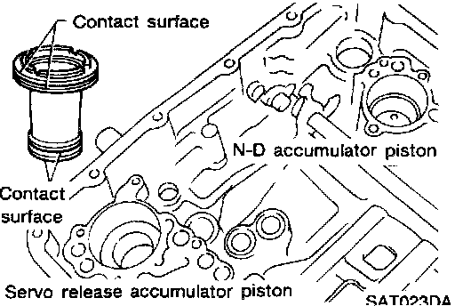 16. Check accumulator pistons and contact surface of transmission case for damage.