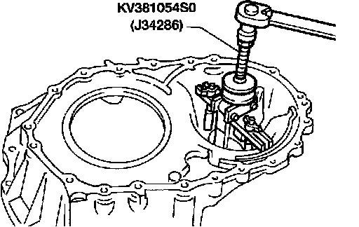 23. Remove differential side bearing outer race from converter housing using Tool.