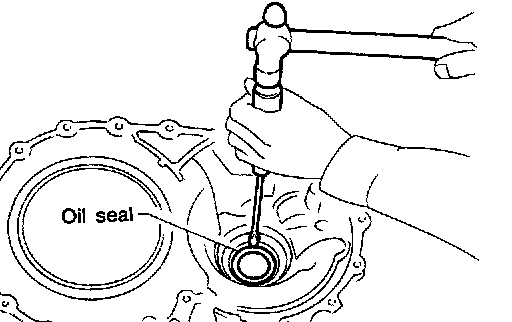 25. Remove side oil sea[ from transmission case using a screwdriver.