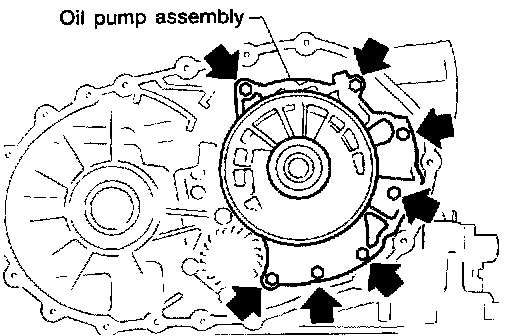 b. Remove oil pump assembly from transmission case.