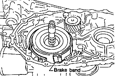 b. Remove brake band from transmission case.