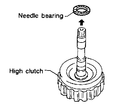 31. Check high clutch hub and needle bearing for damage or wear.