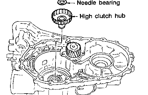 30. Remove high clutch hub and needle bearing from transmission case.