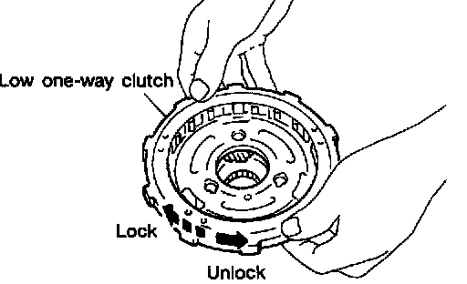 c. Check that low one-way clutch rotates in the direction of the arrow and locks in the opposite direction.