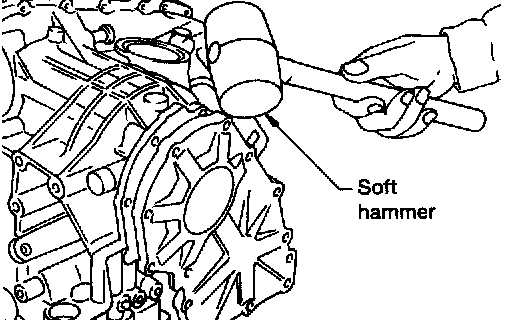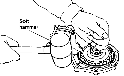 - If output shaft assembly came off with side cover, tap cover with a soft hammer to separate.
