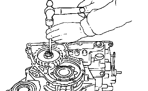 b. Unlock idler gear lock nut using a pin punch.
