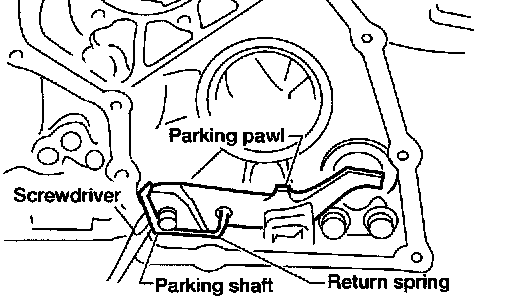42. Remove return spring from parking shaft using a screwdriver.