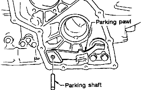 43. Draw out parking shaft and remove parking pawl from transmission case.