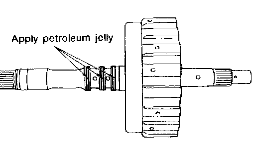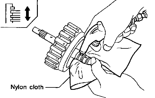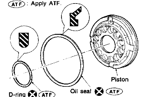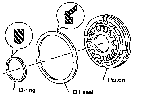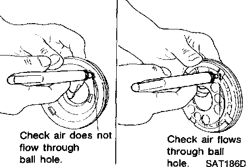 - Apply compressed air to oil hole on return spring side to make sure air leaks past ball.