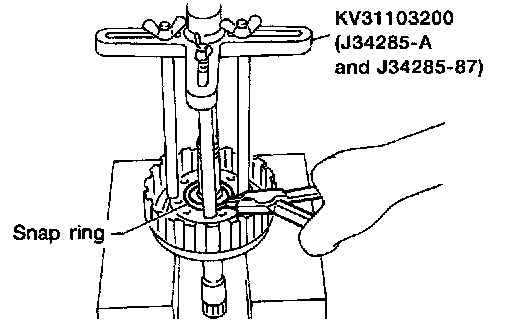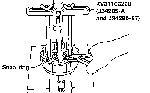 4. Set Tool on spring retainer and install snap ring while compressing return springs.