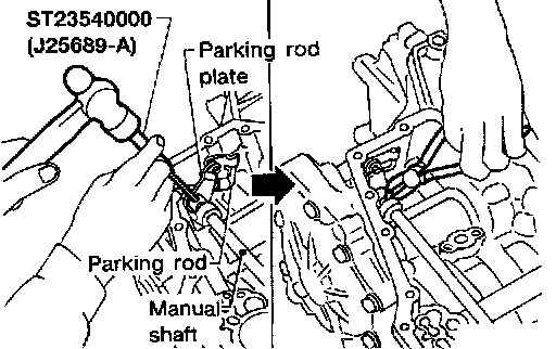 3. Drive and pull out parking rod plate retaining pin using Tool.