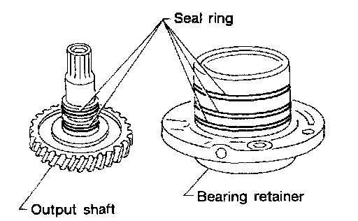 8. After packing ring grooves with petroleum jelly, carefully install new seal rings on output shaft and bearing retainer.