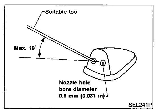 Adjust washer nozzle with suitable tool as shown in the figure.