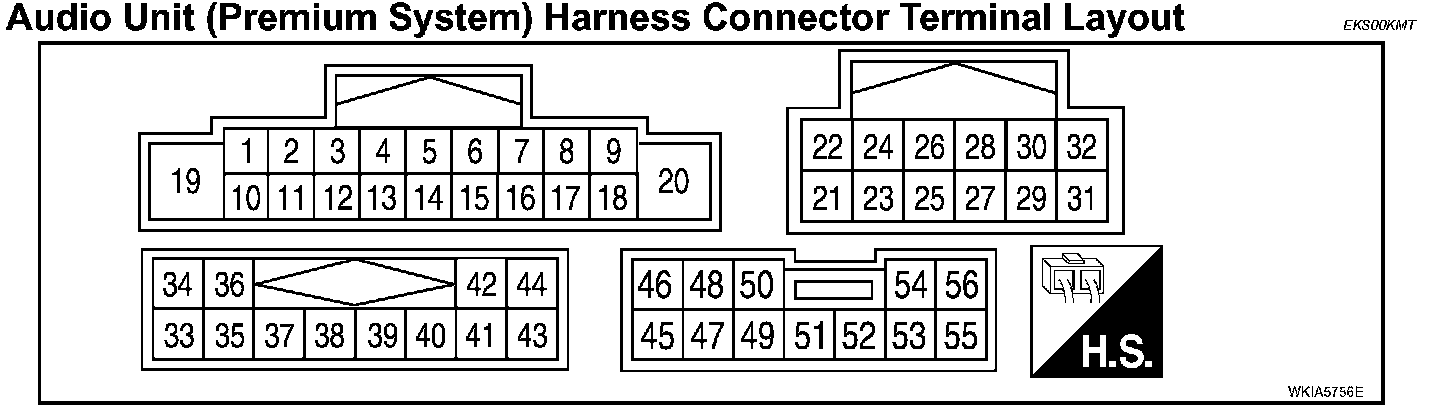Audio Unit (Premium System) Harness Connector Terminal Layout