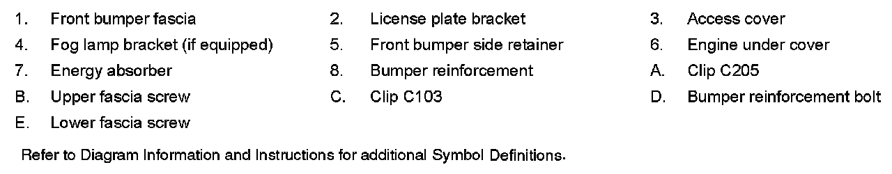 CAUTION: Bumper fascia is made of resin. Do not apply strong force to it, and be careful to prevent contact with oil.