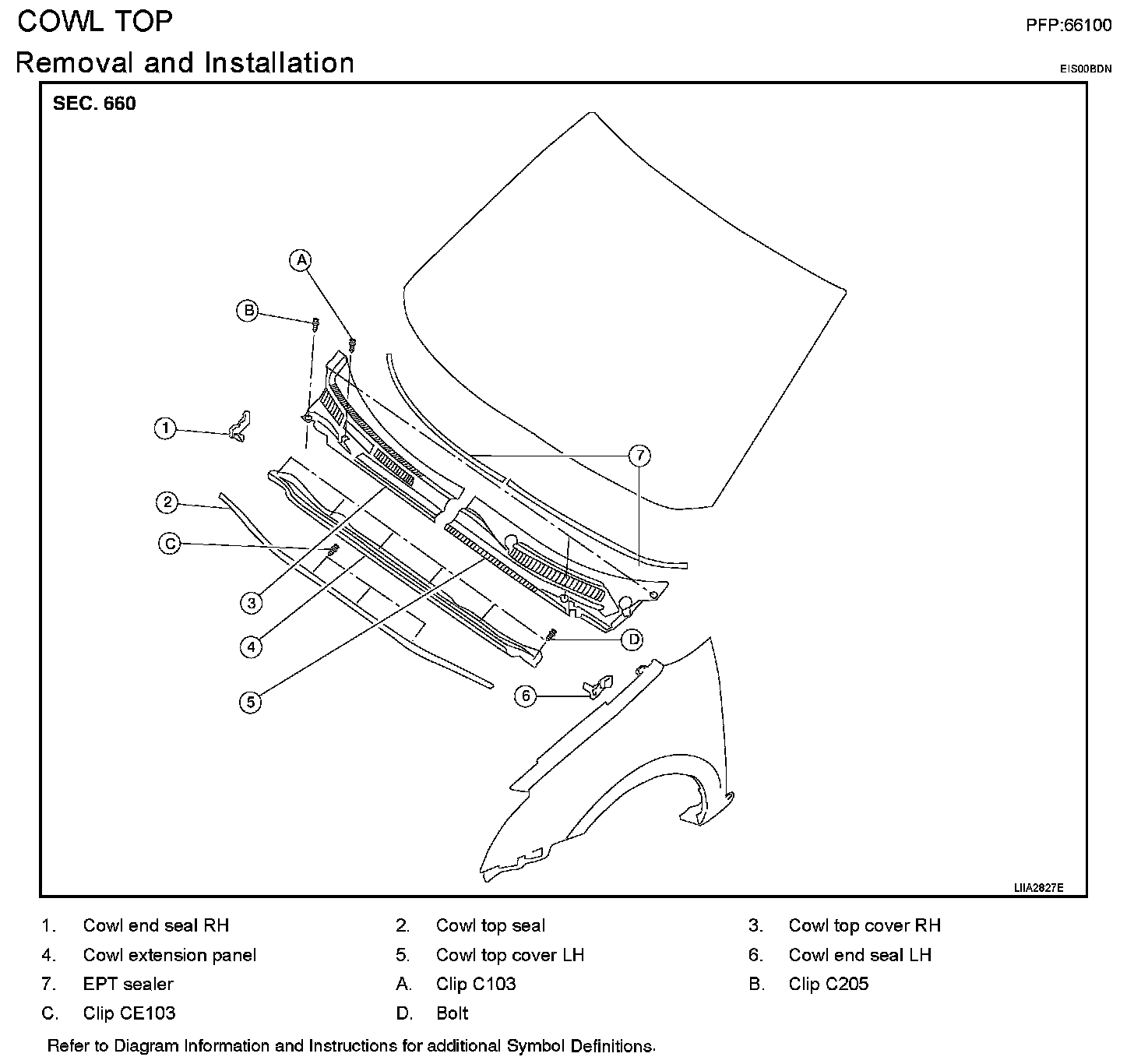 - Always replace EPT sealer and double-faced adhesive tape when installing cowl top cover.