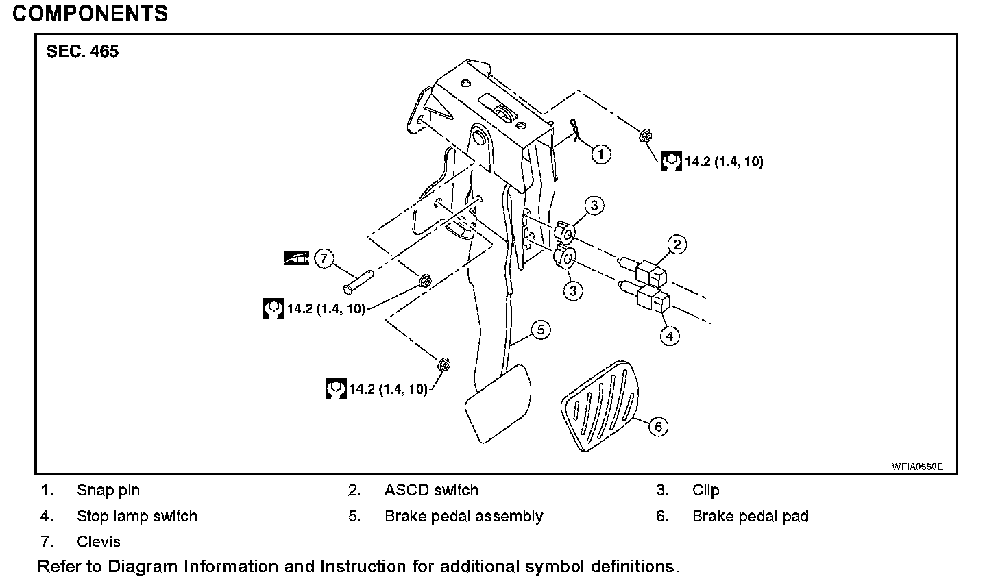 ^ Replace brake pedal assembly if any non-standard condition is detected.