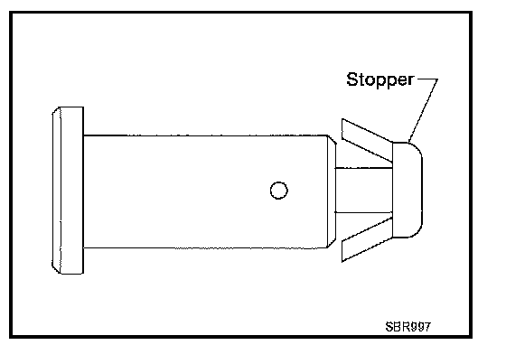 ^ Check clevis pin and plastic stopper for damage and deformation. Replace clevis pin as necessary.