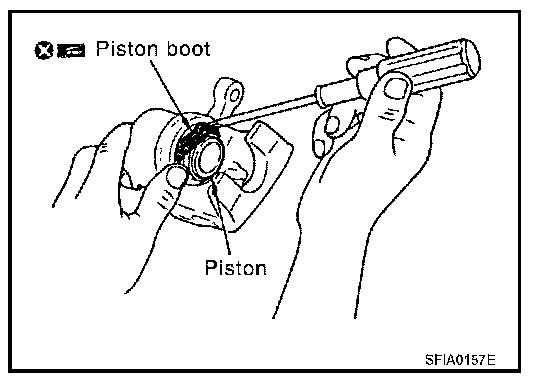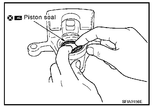 3. Apply a brake fluid to the piston, insert into the cylinder body by hand and firmly attach the piston boot piston-side lip into the piston boot.