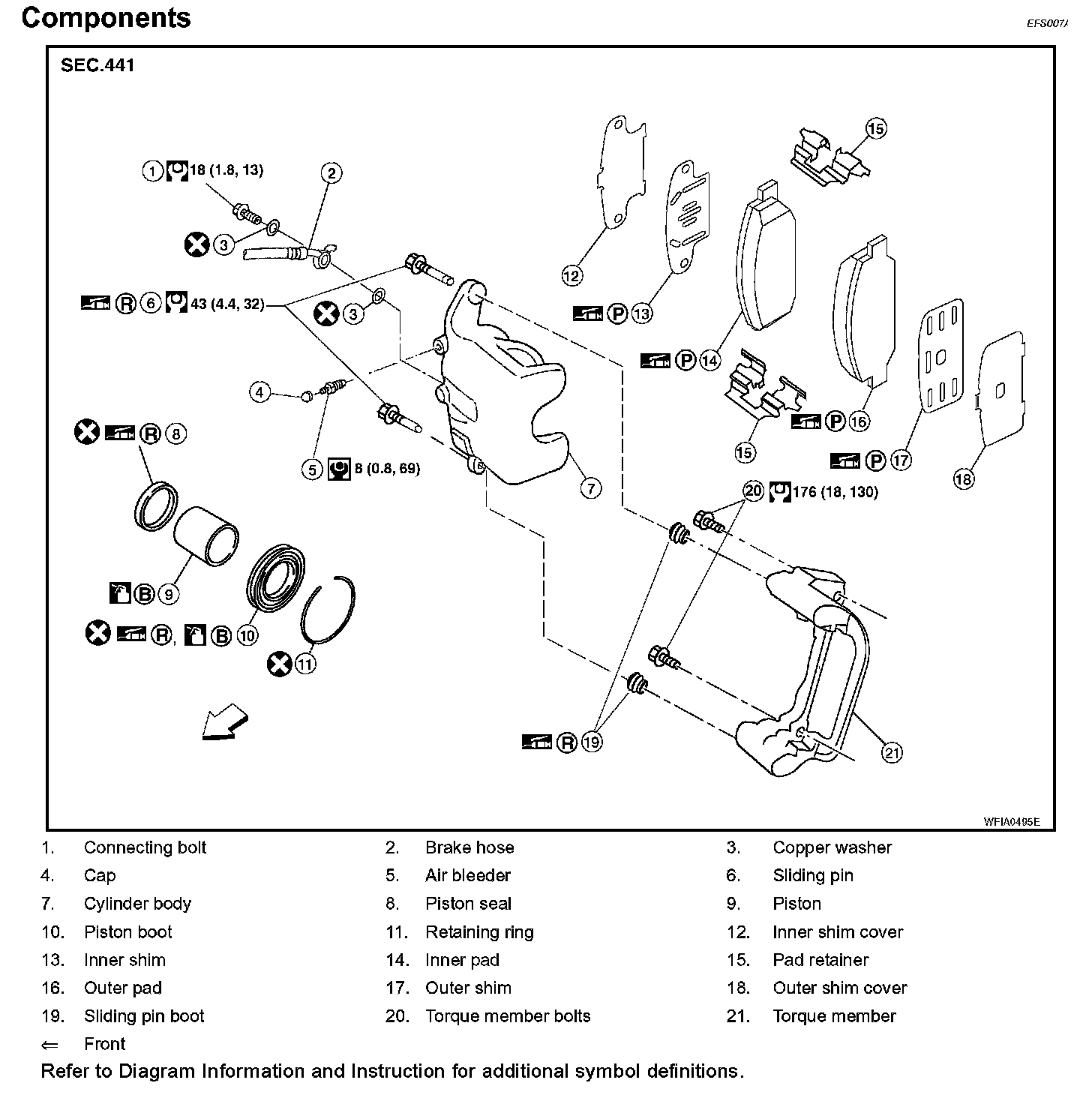 5. Install the sliding pin bolt and tighten to the specified torque. Refer to Exploded View BR-29.