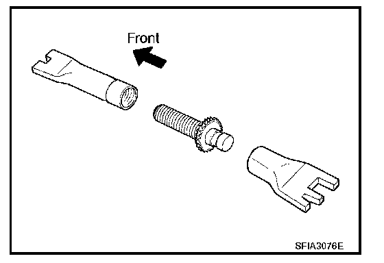 3. Apply NISSAN brake grease (KRF0000005) to screw and confirm the difference between right and left wheel for assembling when disassembled.
