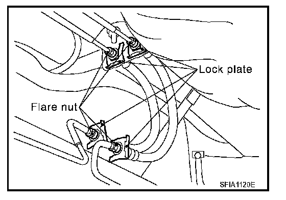 3. Remove lock plate, and remove brake hose from vehicle.