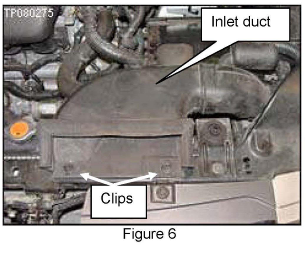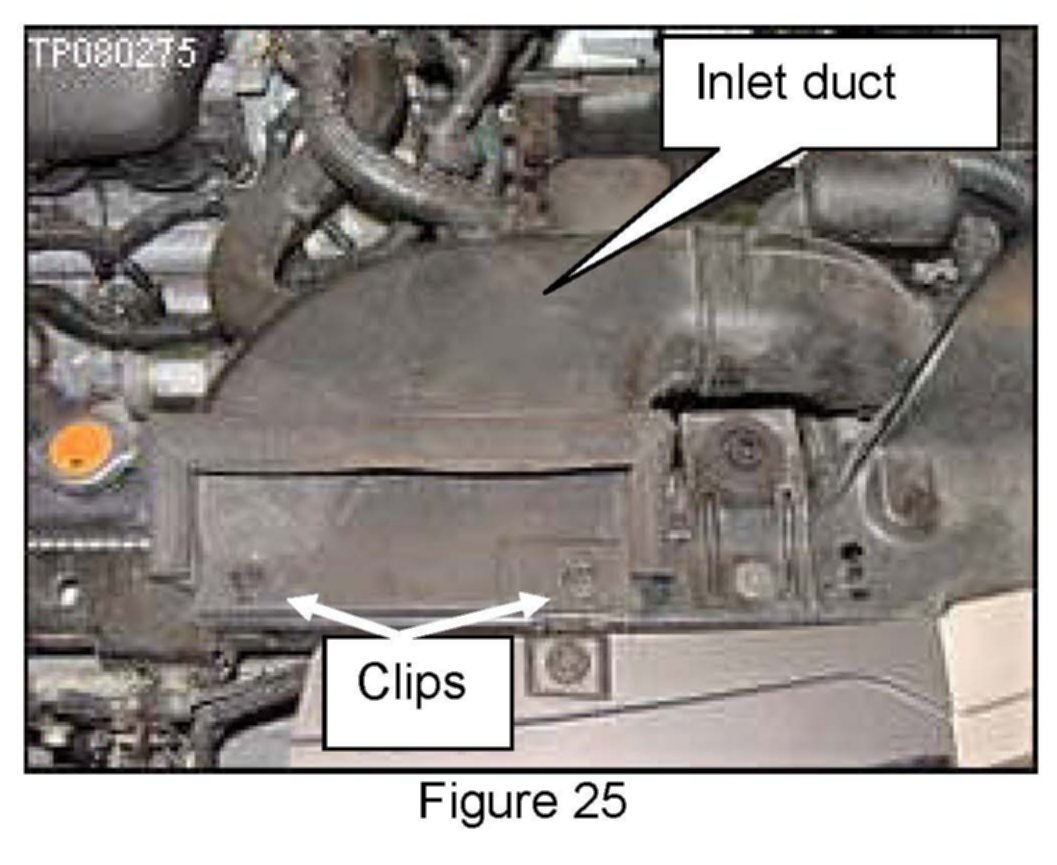 3. Remove the 2 clips from the intake inlet duct and then remove the duct.