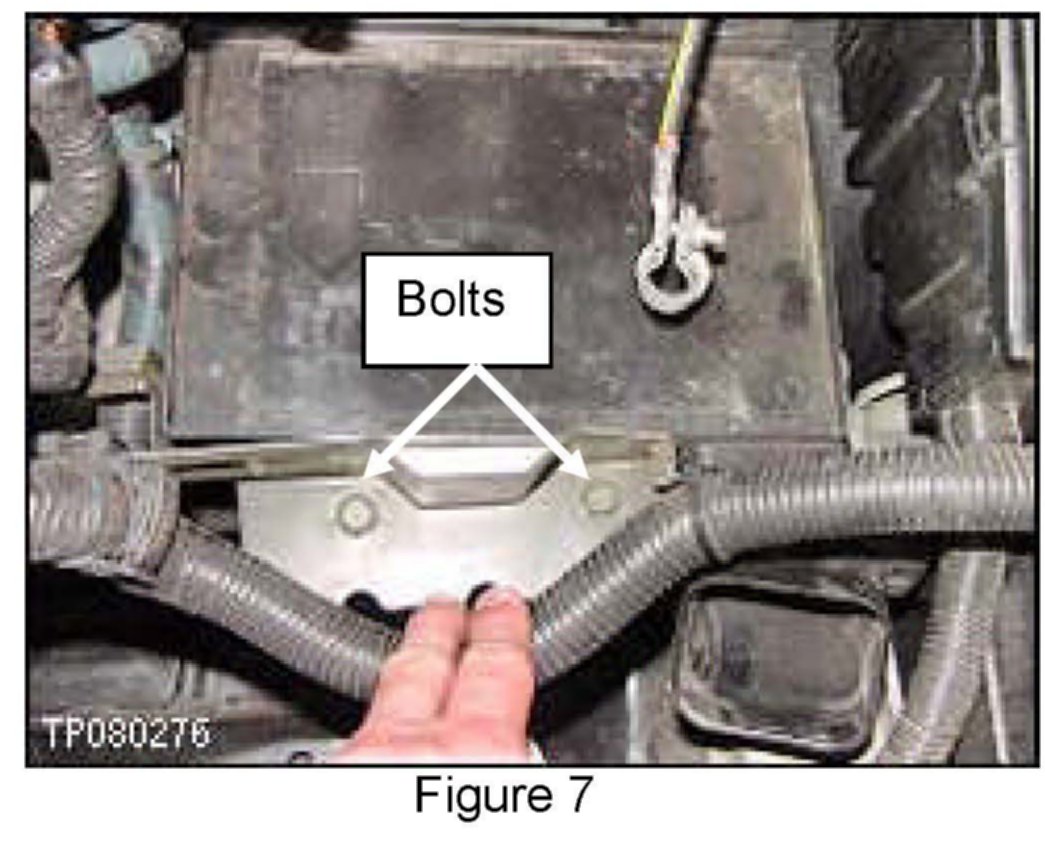4. Remove 2 bolts shown in Figure 7 and move the main harness forward.