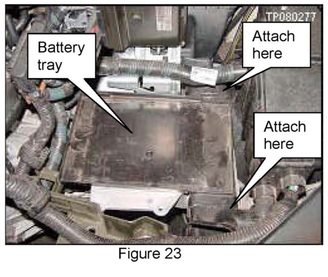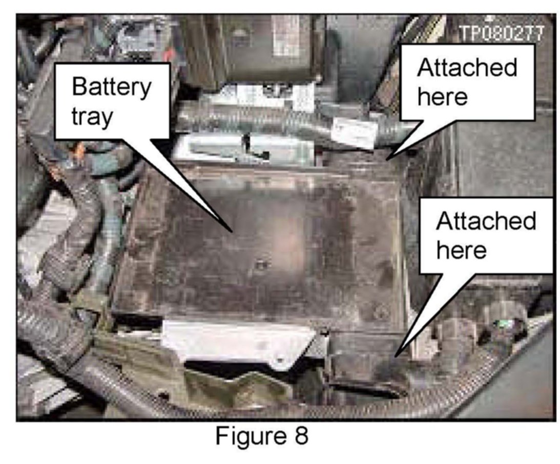 The battery tray is part of the intake duct and must be attached at the front and rear.
