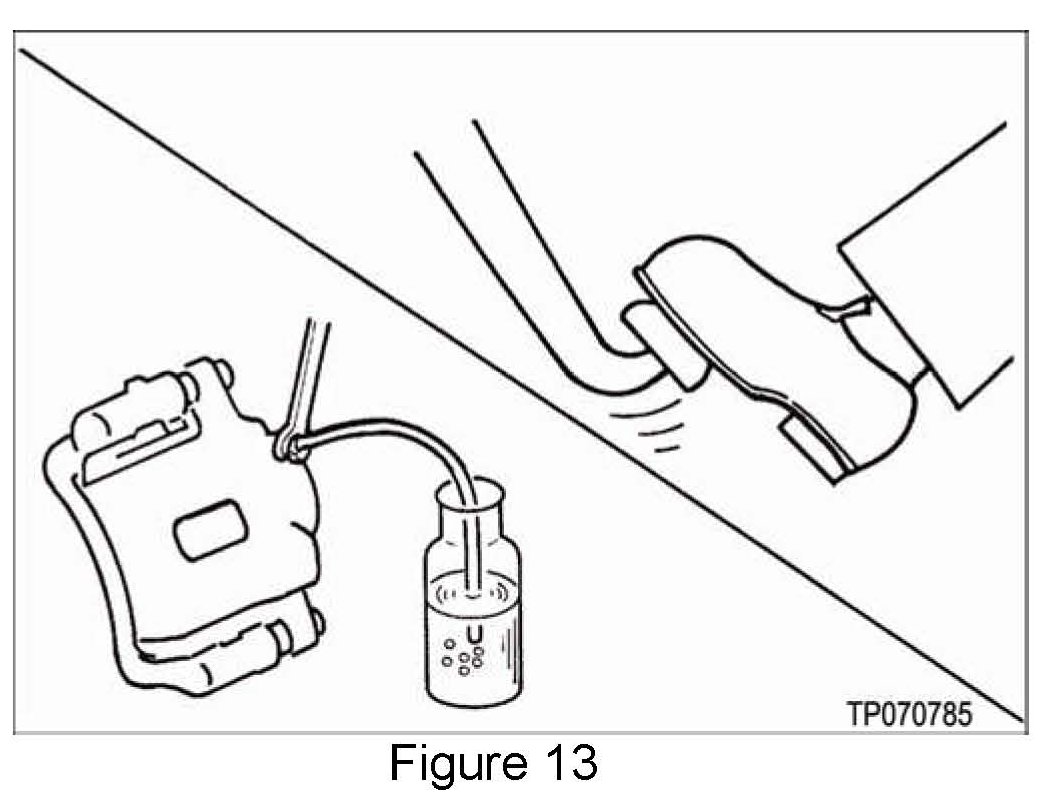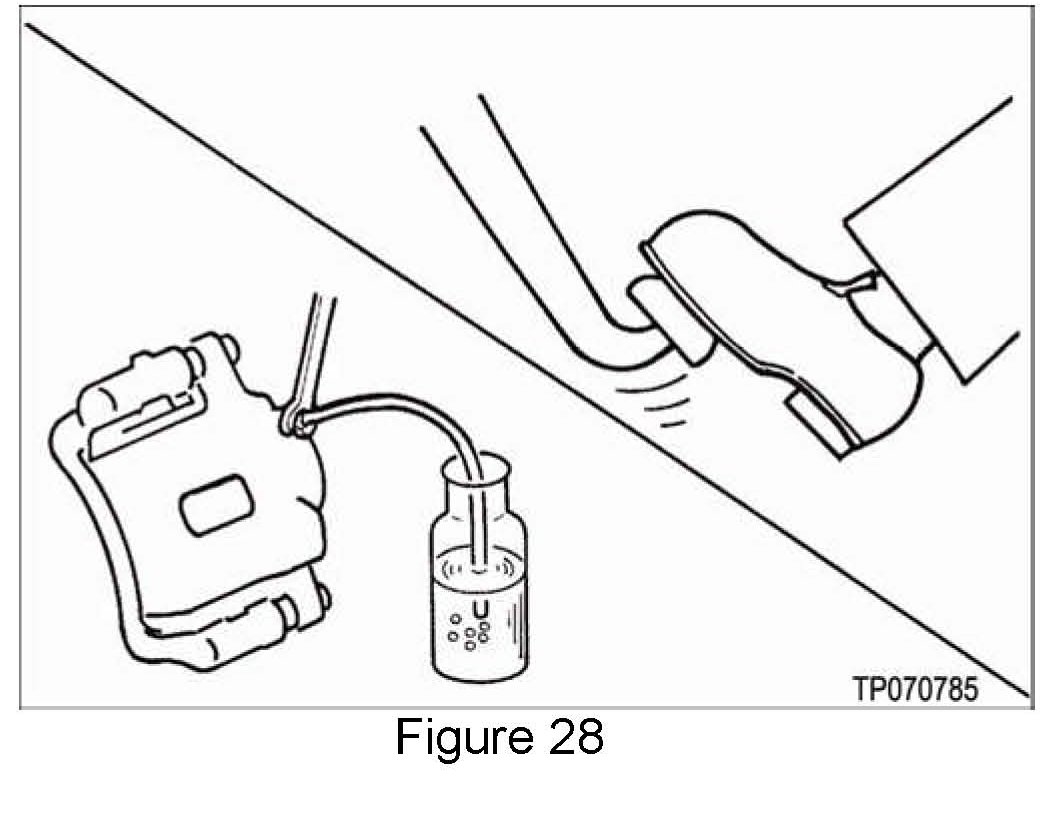 c. With brake pedal depressed, loosen bleed valve to let the air out, and then tighten it immediately. Figure 28