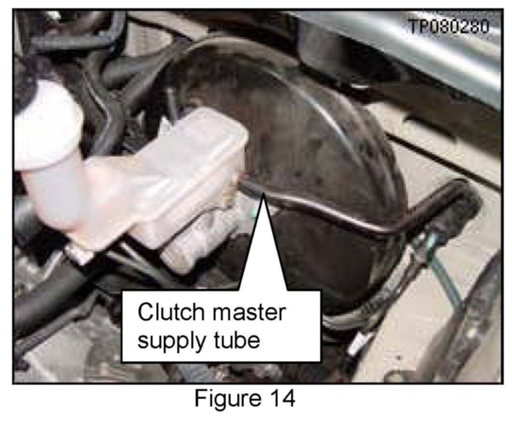 11. If equipped with manual transmission remove the fluid supply tube for the clutch master cylinder.