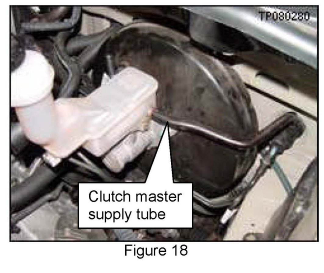 17. If equipped with manual transmission, install the fluid supply tube for the clutch master cylinder.