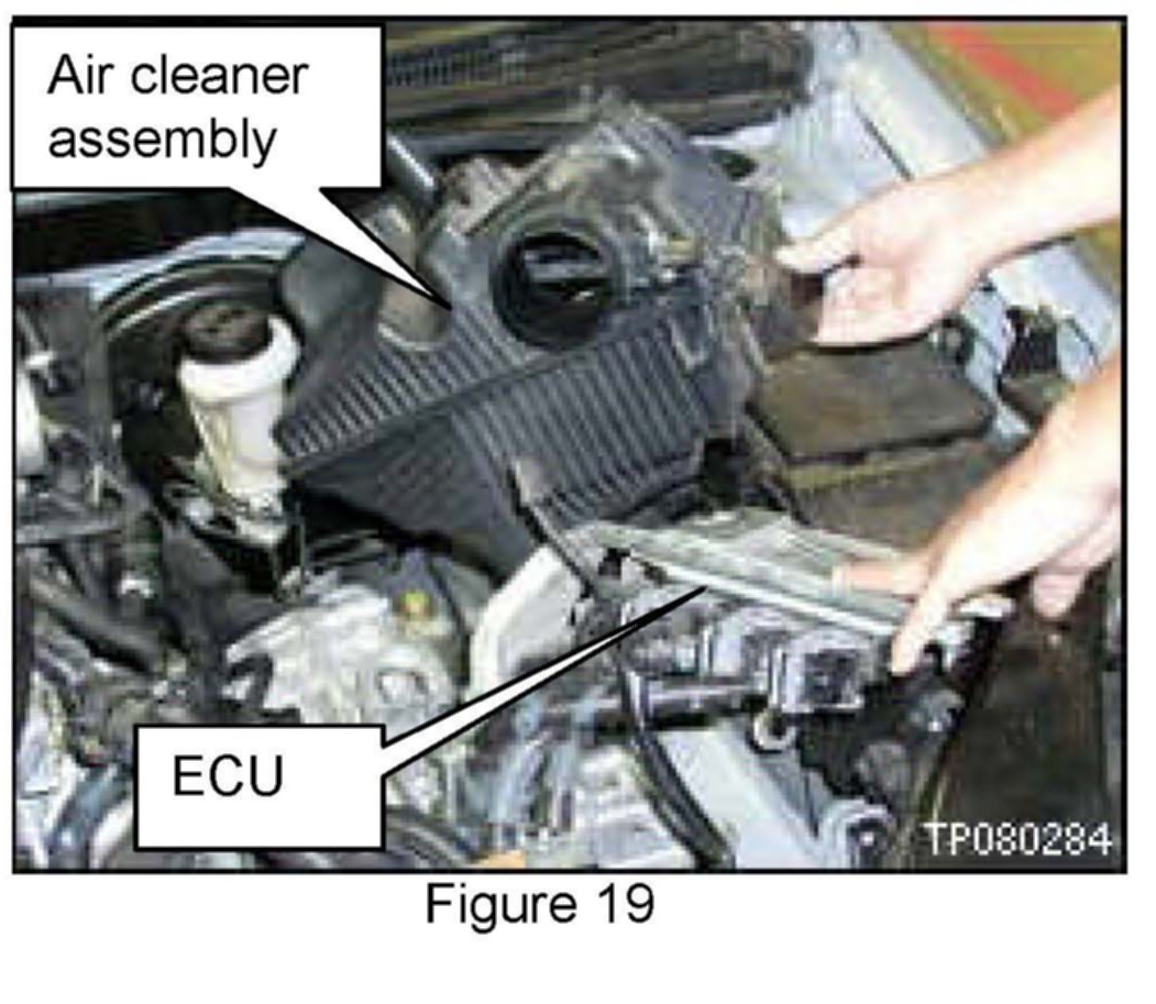 18. Hold the ECU forward and carefully install the air cleaner assembly.