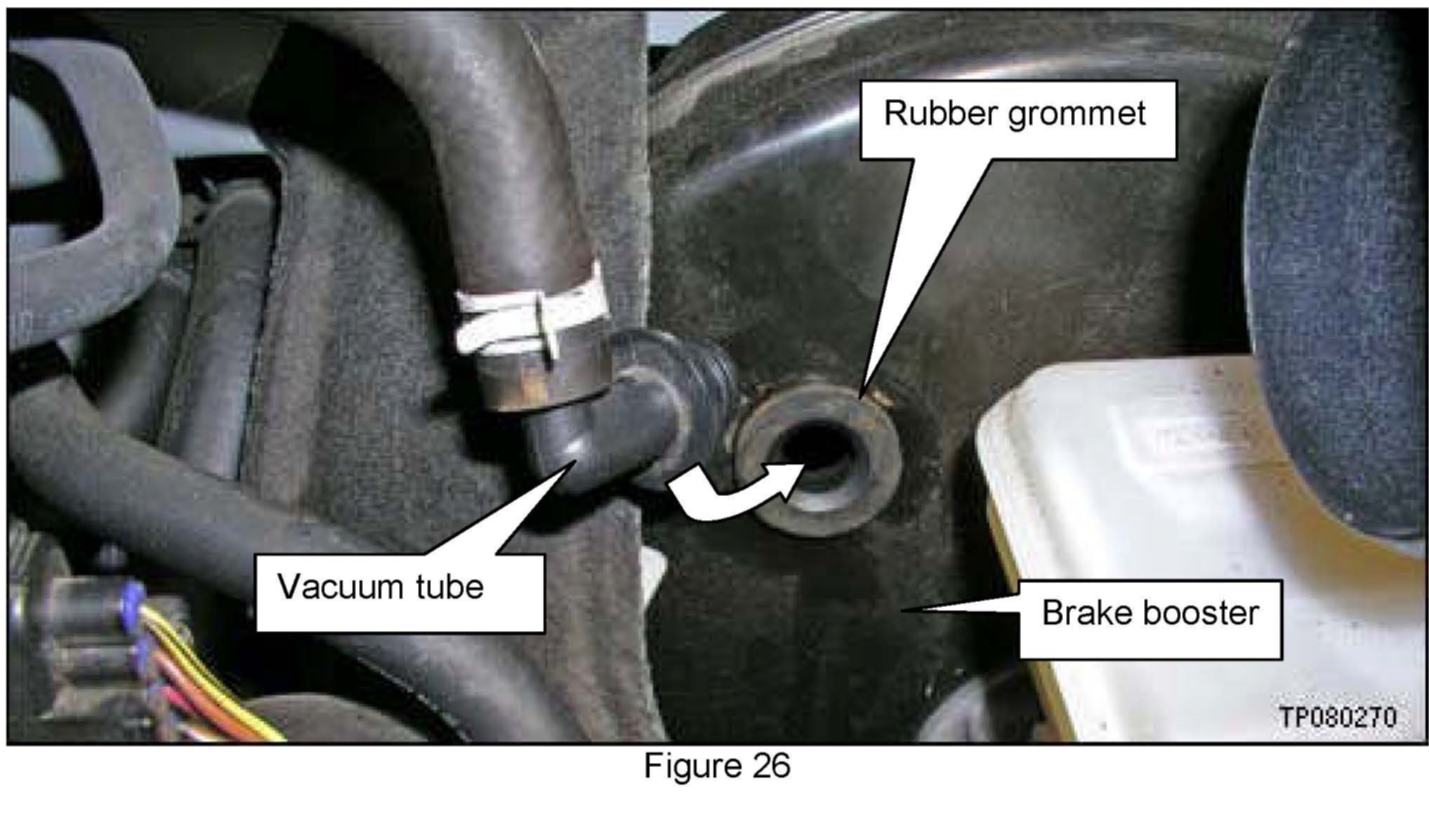 26. Carefully install / push the vacuum tube into the brake booster (see Figure 26).