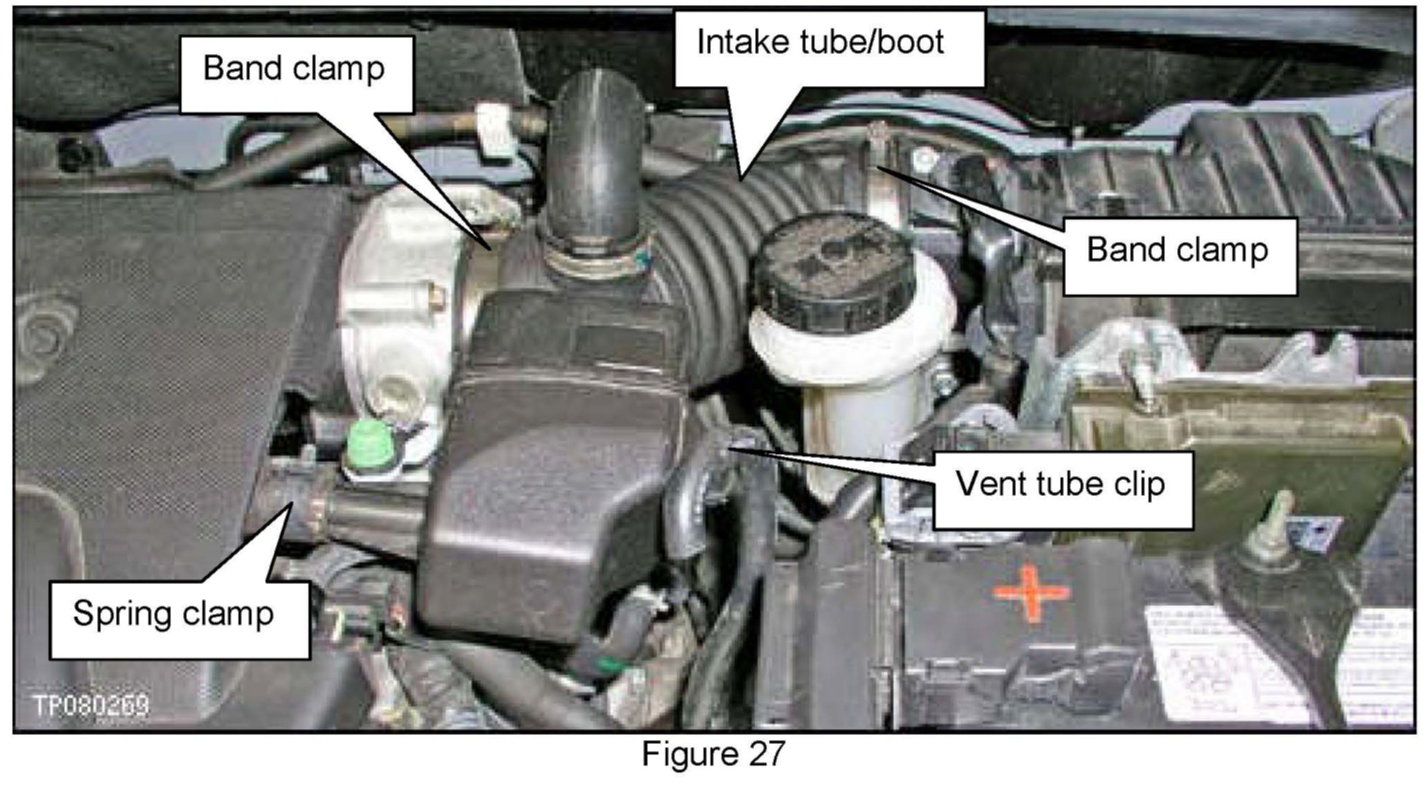 27. Install the air intake tube/boot between the air cleaner assembly and intake manifold (see Figure 27).