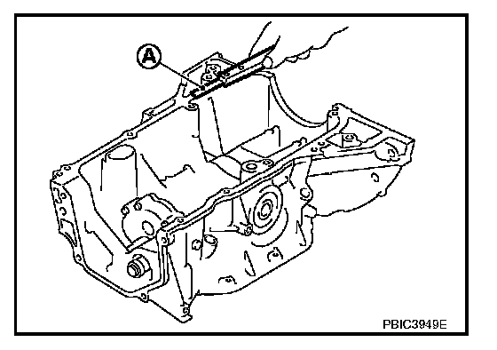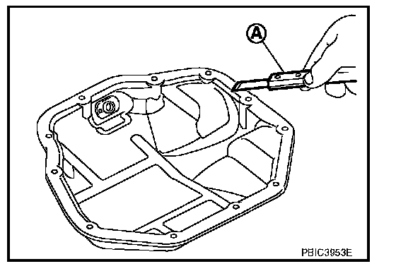 8. Use a scraper (A) to remove old liquid gasket from mating surfaces.