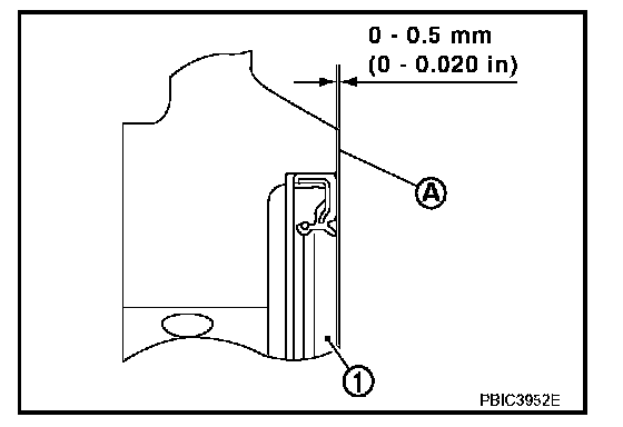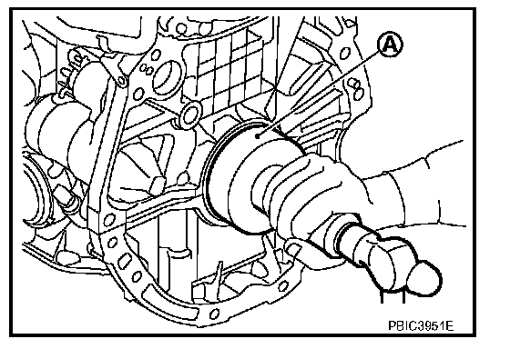 c. Press-fit the rear oil seal using a drift with outer diameter 115 mm (4.53 in) and inner diameter 90 mm (3.54 in) (A) (commercial service tool).