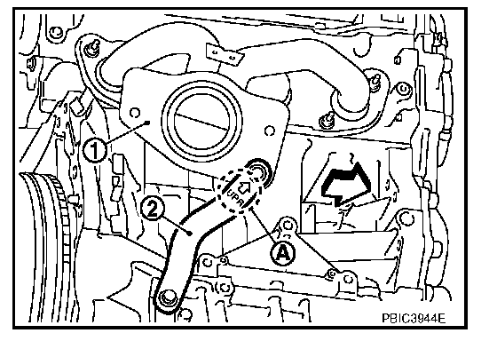 3. Install exhaust manifold stay (2) in the direction as shown.