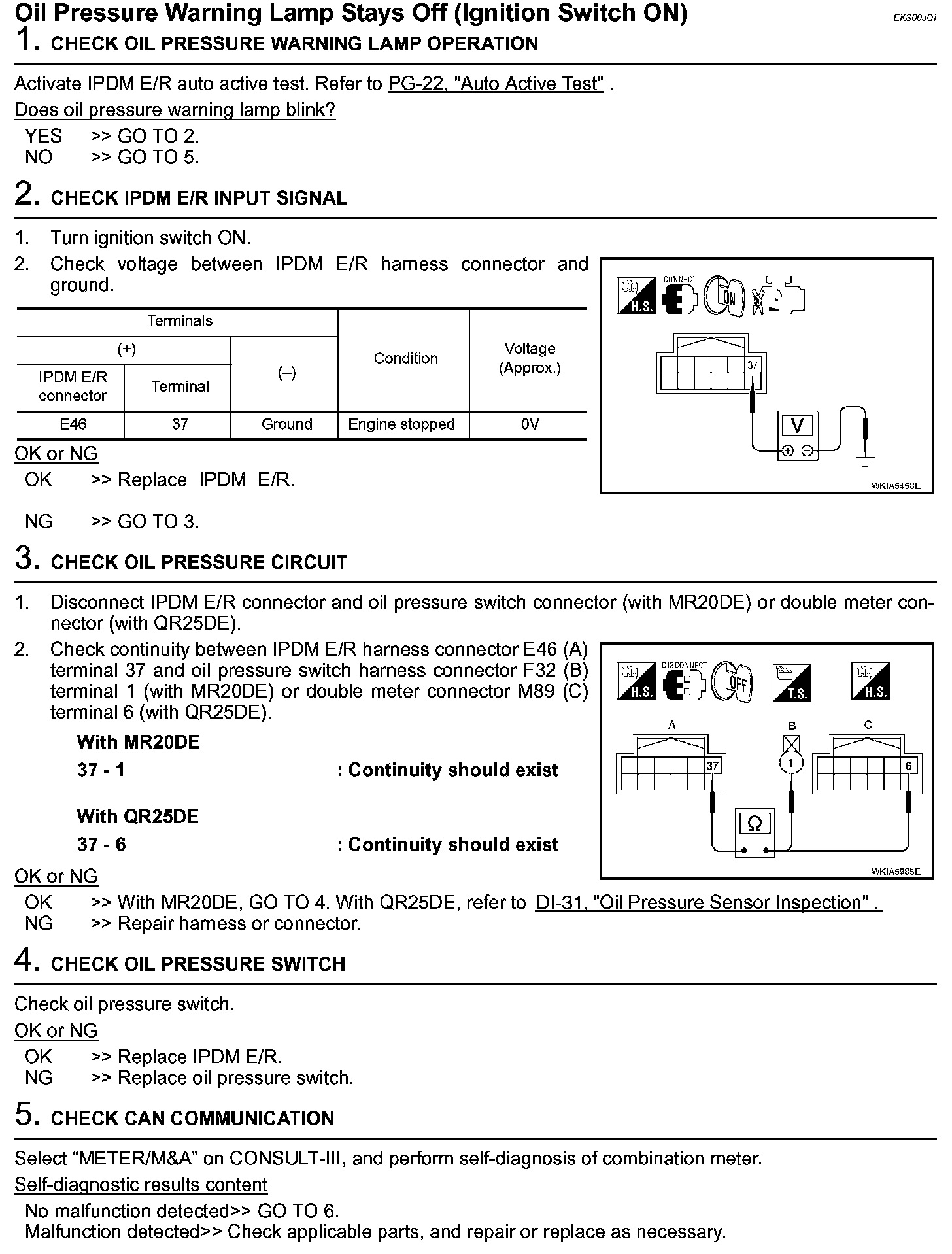 Oil Pressure Warning Lamp Stays OFF (Ignition Switch ON) (Steps 1 - 5):