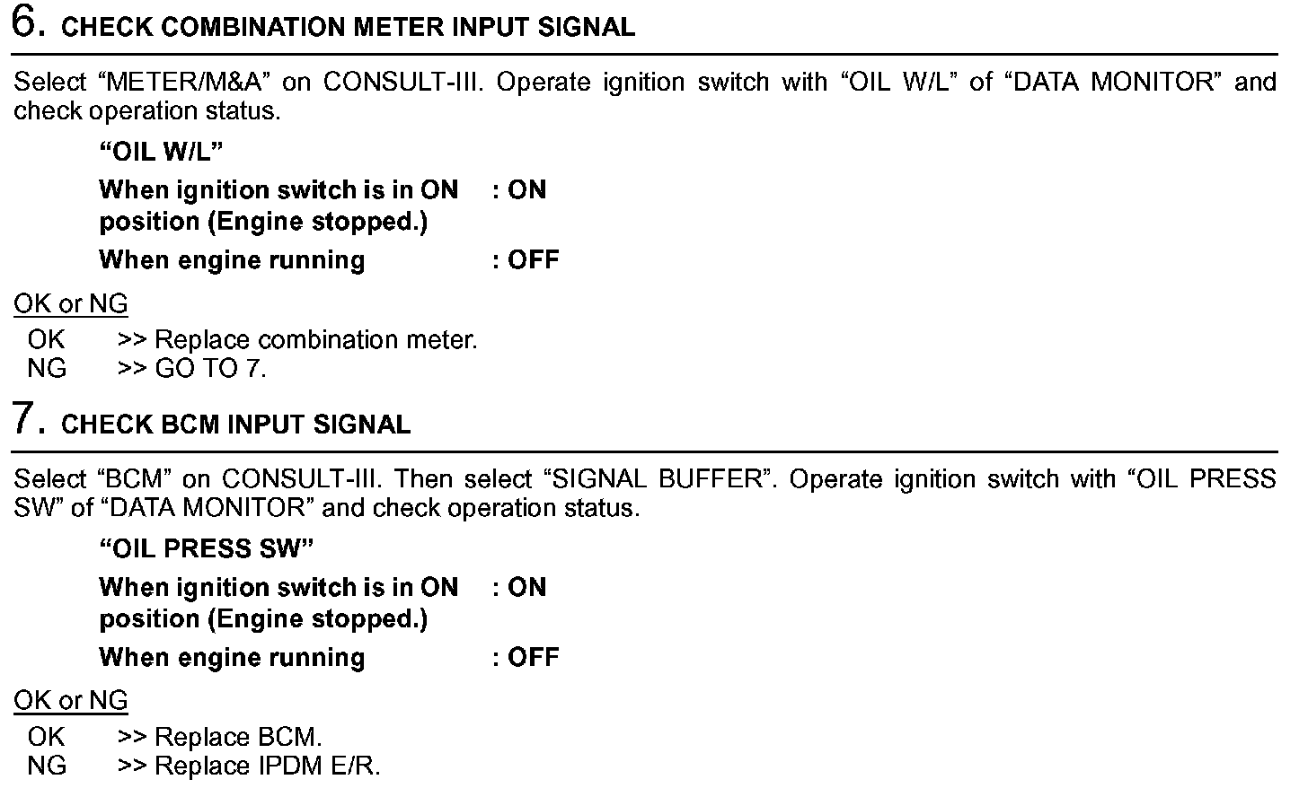 Oil Pressure Warning Lamp Stays OFF (Ignition Switch ON) (Steps 6 - 7):