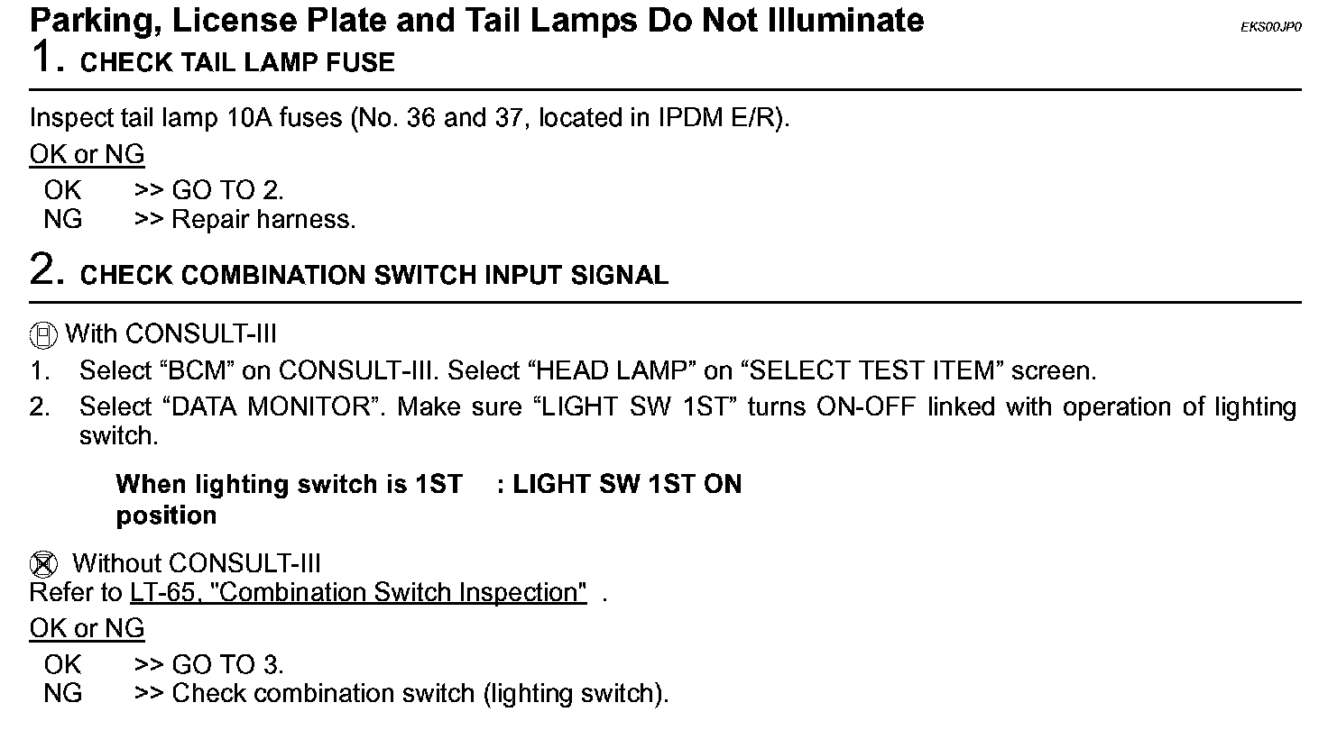 Parking, License Plate And Tail Lamps Do Not Illuminate (Steps 3 - 4):