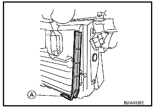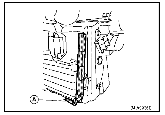 b. Swing the filter cover into the heater and cooling unit case until the filter cover tab (A) snaps securely on the heater and cooling unit case.
