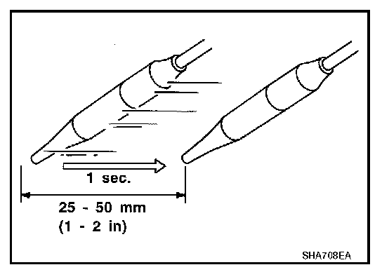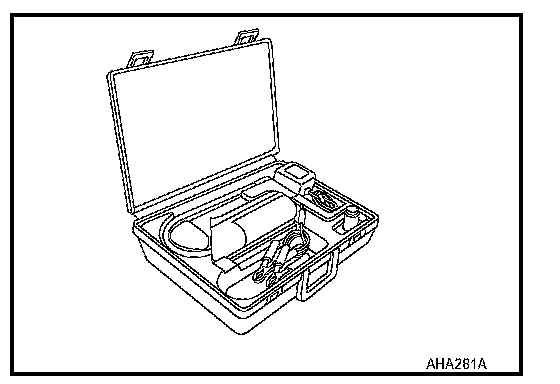 NOTE: To prevent inaccurate or false readings, make sure there is no refrigerant vapor, shop chemicals, or cigarette smoke in the vicinity of the vehicle. Perform the leak test in a calm area (low air/wind movement) so that the leaking refrigerant is not dispersed.