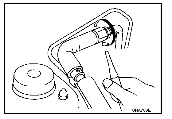4. Conduct the leak test from the high side (compressor discharge to evaporator inlet) to the low side (evaporator drain hose to the compressor shaft seal). Refer to MTC-94, "Components". HFC-134a (R-134a) Service Procedure Clean the component to be checked and move the leak detector probe completely around the connection/component.