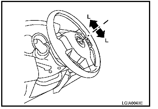 ^ Measure the length L as shown, if vehicle has been involved in a minor collision. Replace steering column assembly if outside the standard.